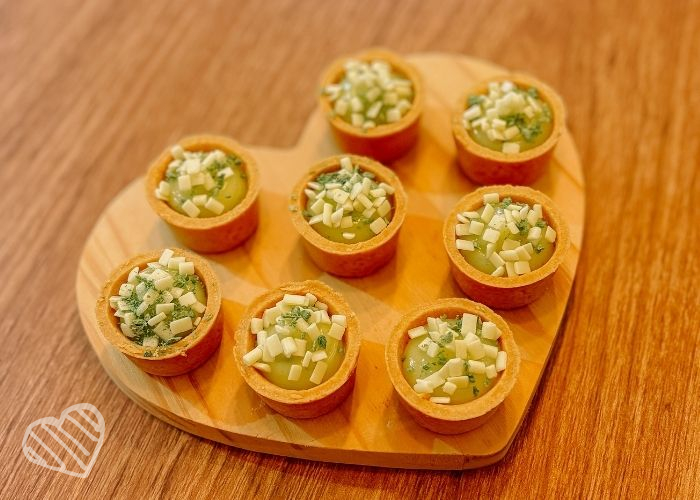 Massa crocante recheada com lemon curd (creme francês a base de limão taiti), pedaços de suspiro e casca de limão açúcarada.