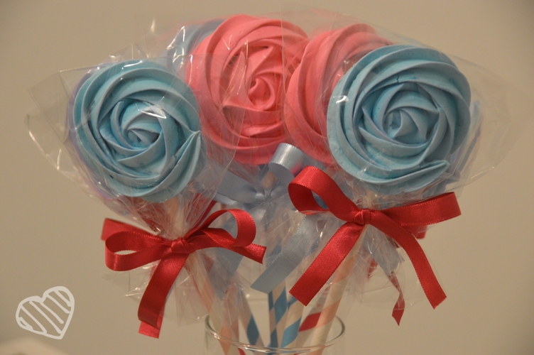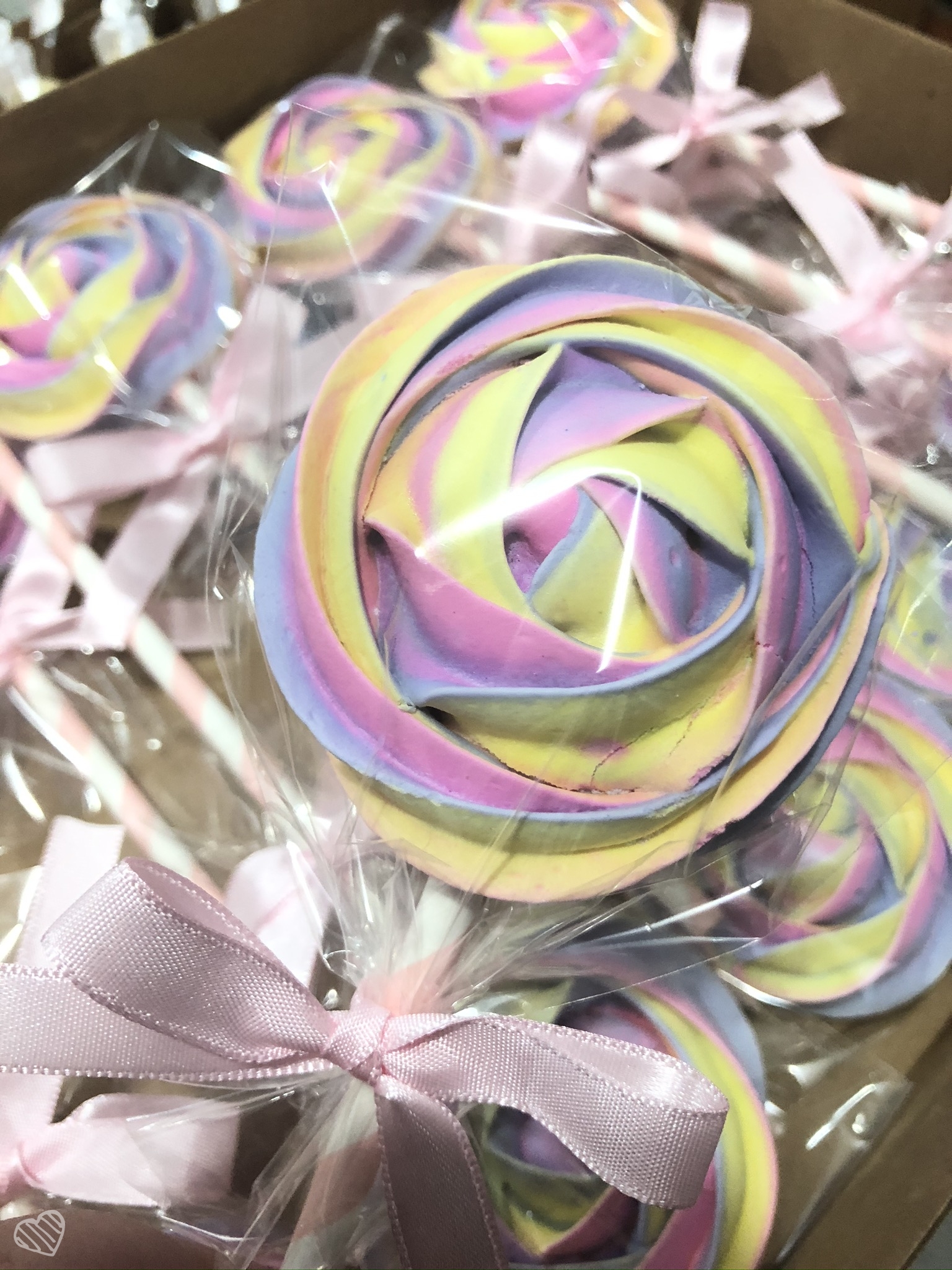 Pirulito de merengue suíço com canudo de papel. Pode ser colorido na cor do tema da festa.
