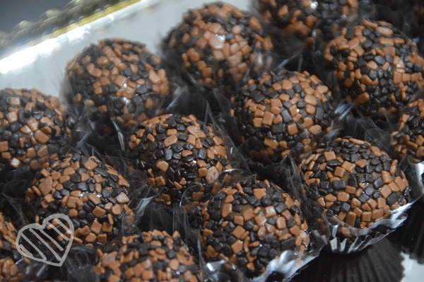 Cobertura de confeito granulado de chocolate belga ao leite e meio amargo.