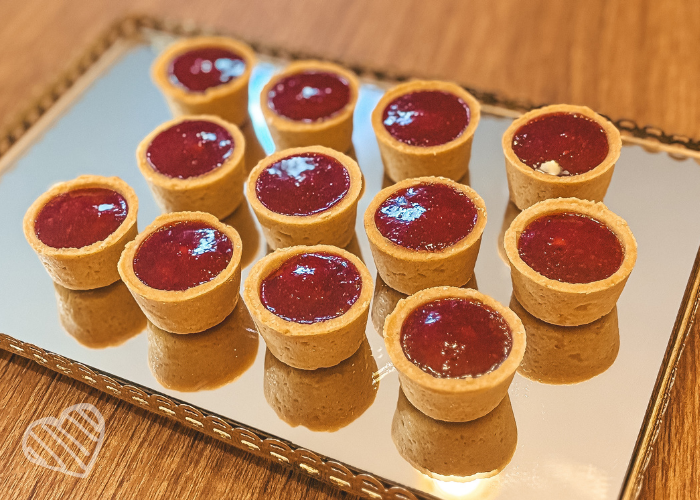 Copinhos de Chocolate branco com recheio de goiabada e brigadeiro de cream cheese. Decoração de coração de goiabada.