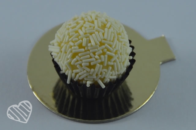Cobertura de granulado de chocolate branco belga Callebaut®.